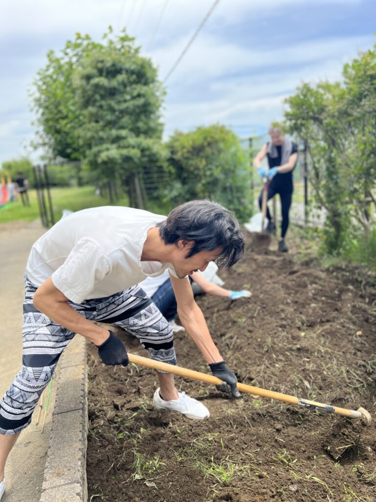 約2時間の作業を経て、私たちは見事に3つの畝を作ることができました。耕す作業は体力が必要でしたが、横の公園で遊ぶ園児を見ていると勝手に力が湧いてきて無事に達成することができました。最後に畝が完成した時の達成感は、何にも代えがたいものでした。