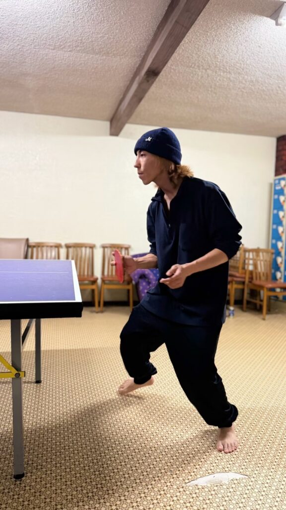 施設内に設置された卓球台で白熱の対決がスタート!🏓