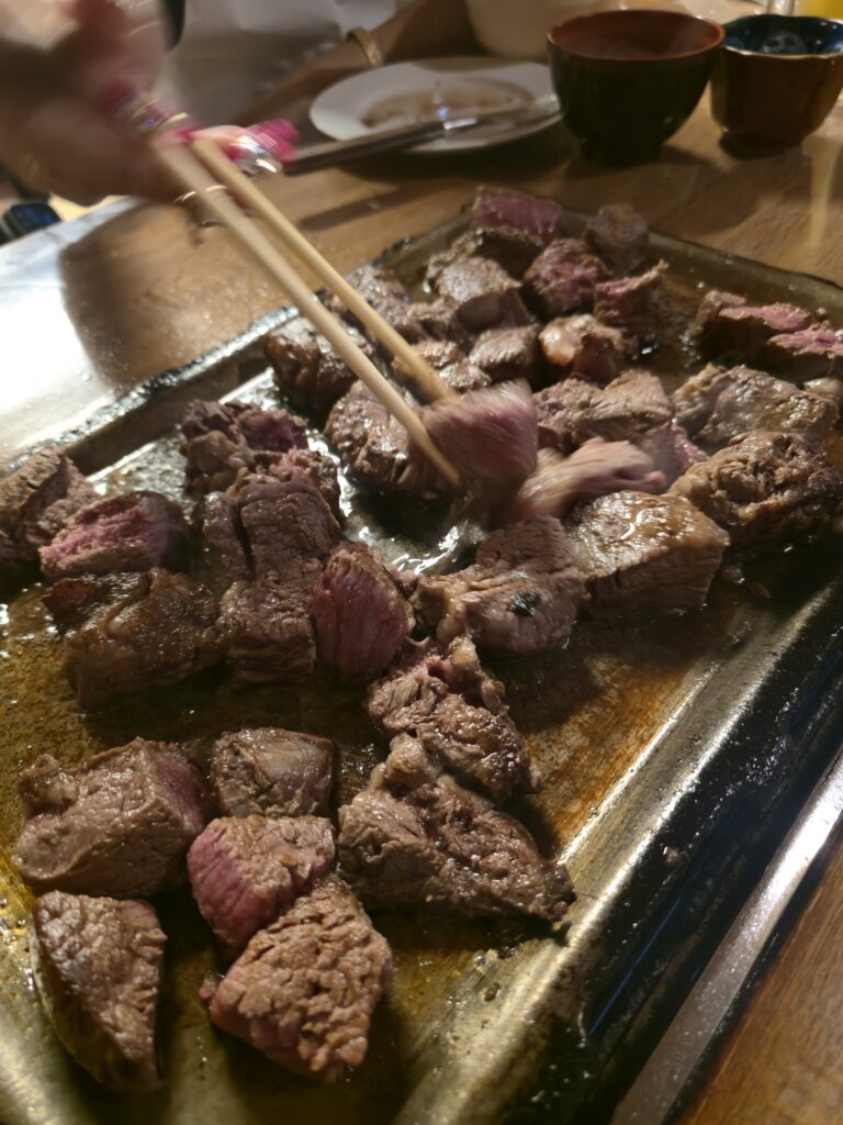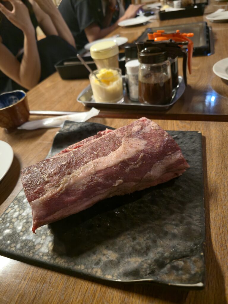 ジューシーな肉と熊本の味覚を楽しみながら、旅の初日を振り返る温かい時間となりました。