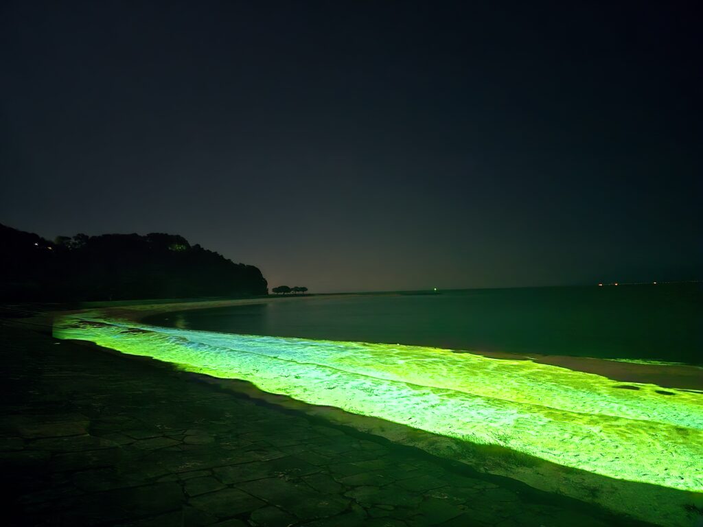 帰りにはビーチでのプロジェクションマッピングを鑑賞し、幻想的な光の演出に包まれながら初日を締めくくりました。