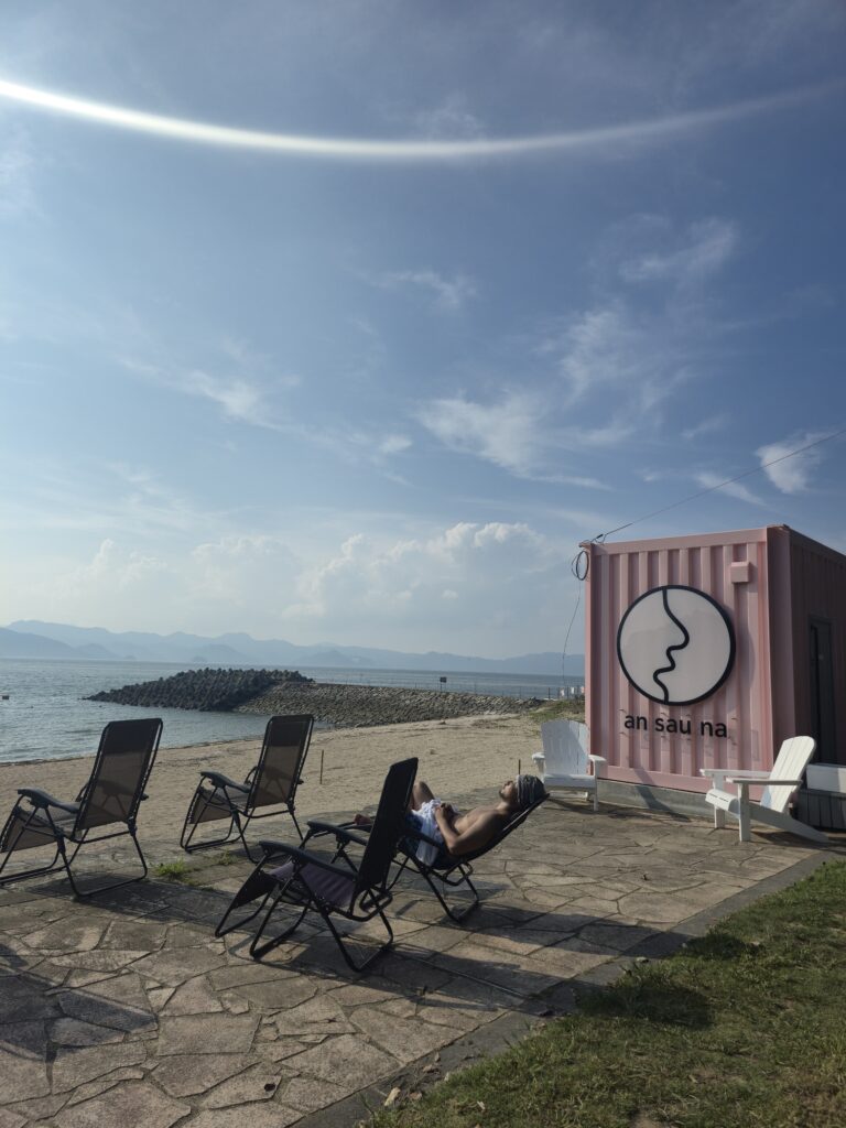 音楽とともにサウナで“ととのう”というETFならではのスタイルで、海風とビートに包まれながらリラックスした時間を過ごしました。