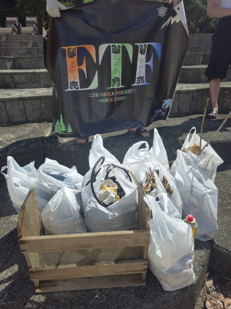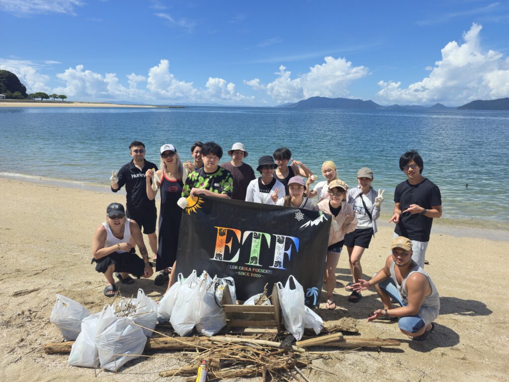 ETFではNPO法人としても環境保全活動に取り組んでおり、イベントのたびに訪れた地域への感謝を込めて清掃を行っています。この日も多くのメンバーが参加し、海岸に打ち上げられたペットボトルや漂着ゴミなどを丁寧に回収。