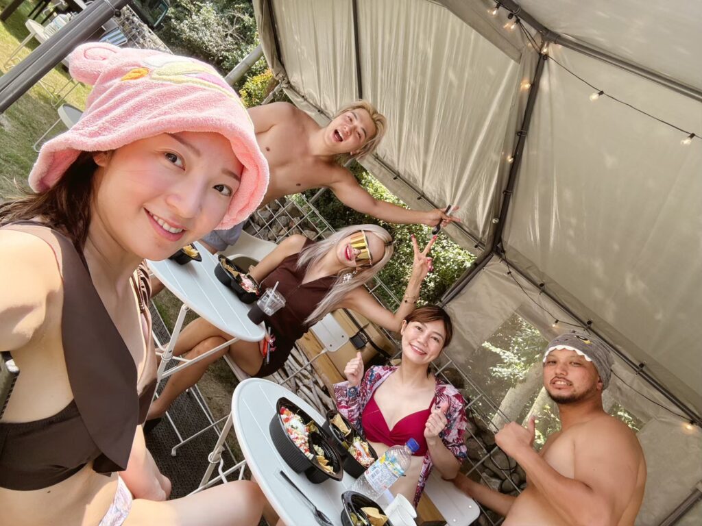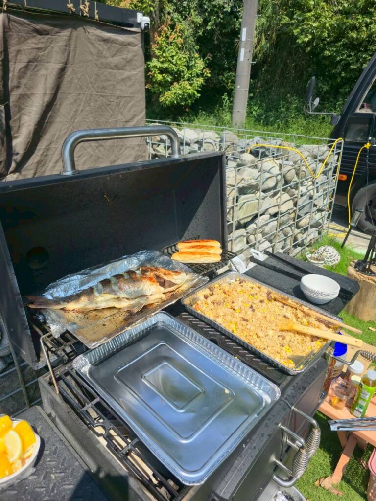 サウナで整ったあとは、昼からBBQとDJパーティーがスタート。